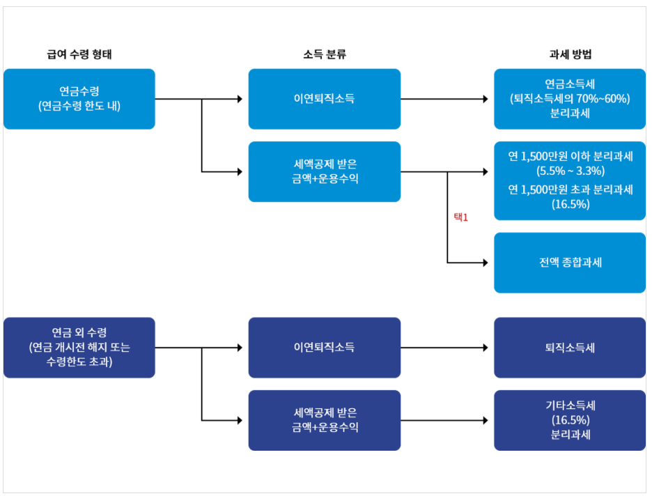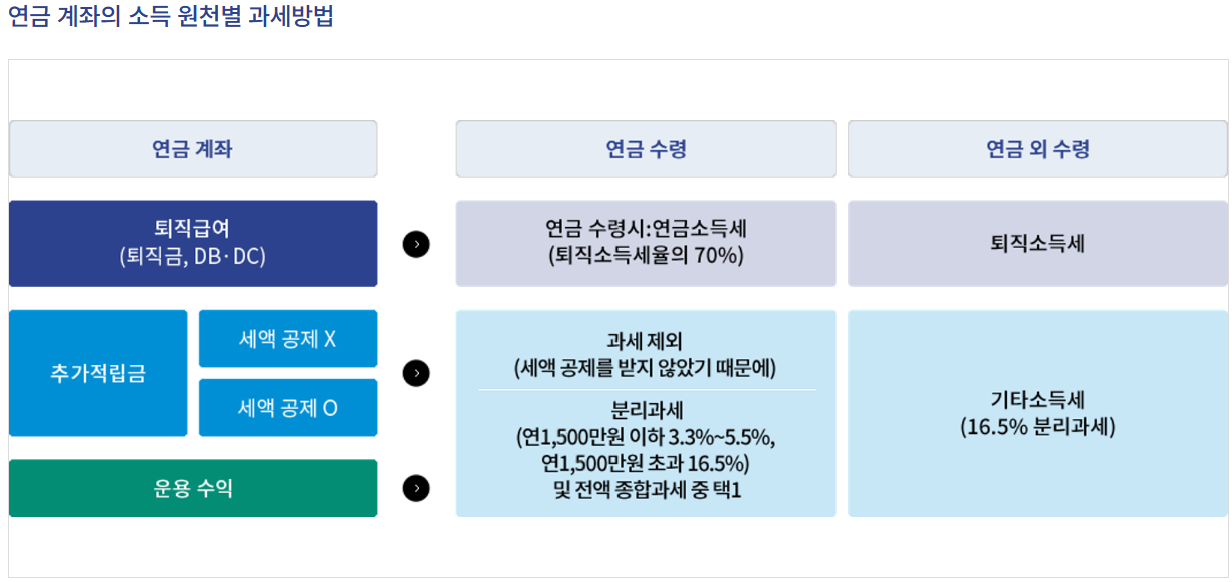 - 연금 수령 시 3.3~5.5% 저율 과세
