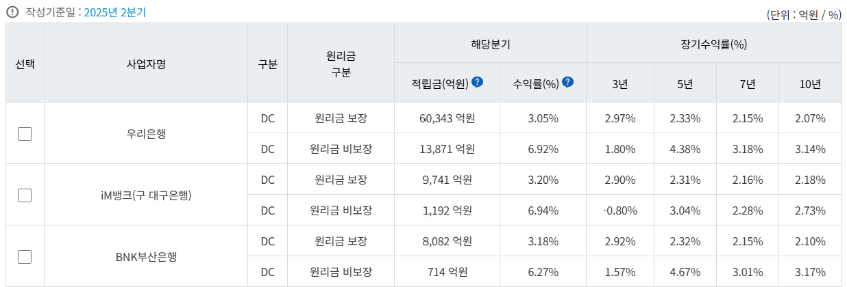 - ETF 편입 가능 : 일부 금융사 DC형에 ETF 상품 허용