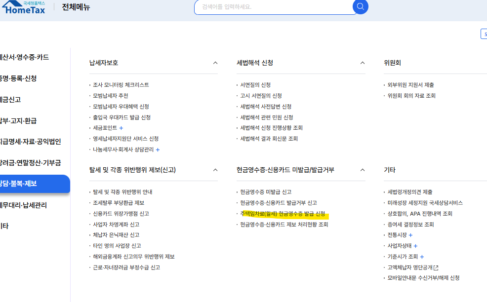 - 매년 5월 종합소득세 신고 시, 홈택스를 통해 ‘월세 세액공제’ 항목에 금액 입력 및 증빙서류 첨부하여 신청합니다.