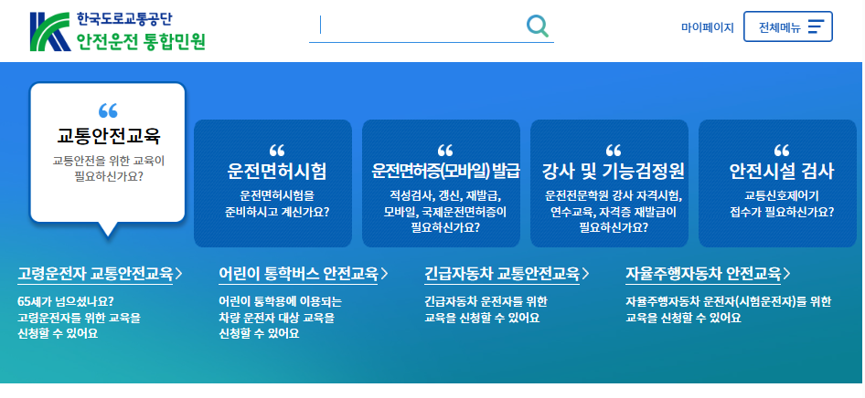 메인 | 한국도로교통공단 안전운전 통합민원