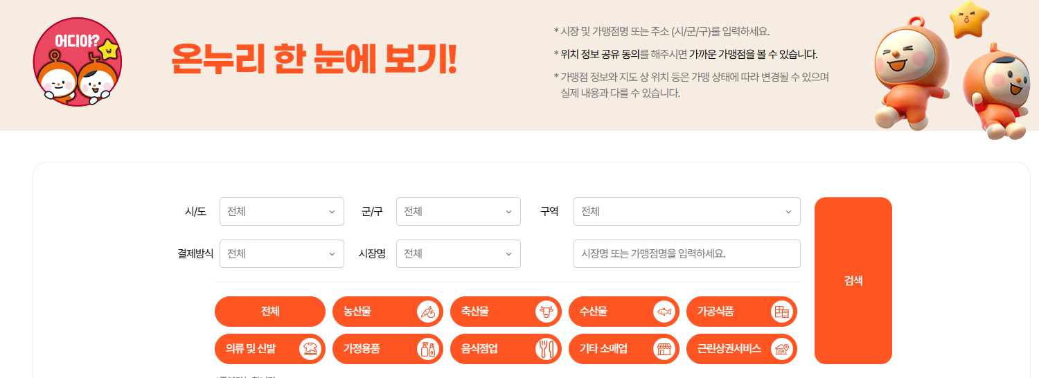 대한민국 행복충전 온누리상품권 가맹점찾기
