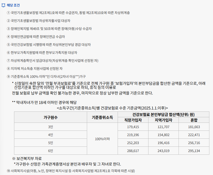 지원 대상은 일반 가정뿐만 아니라 취약계층, 차상위계층, 저소득층 가구까지 포함됩니다. 특히 저소득층의 경우 지원 금액이 상대적으로 높아 최대 60만 원까지 지원을 받을 수 있으며, 일반 가정은 대략 10만 원 내외의 지원을 받을 수 있습니다. 단, 지역별 예산 상황에 따라 지원 금액이나 조건이 달라질 수 있으므로 반드시 해당 지자체의 공지를 확인해야 합니다.