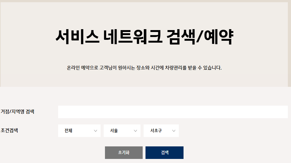 서비스 네트워크 검색/예약 | 현대자동차 - 현대닷컴 | 대한민국 대표 자동차회사 hyundai.com