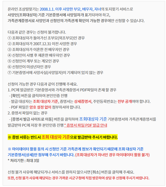 조상땅 찾기 서비스는 유용하지만 몇 가지 유의할 점이 있습니다.