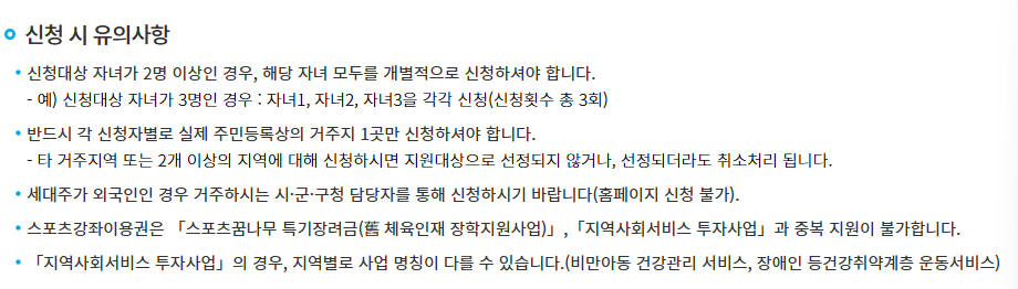 다만, 지원 대상은 매년 예산과 정책 방향에 따라 달라질 수 있으므로, 신청 전 반드시 해당 연도의 모집 공고를 확인하는 것이 중요합니다. 공고에는 지원 대상, 신청 기간, 지급 금액, 사용 가능한 종목 등이 상세히 안내됩니다.