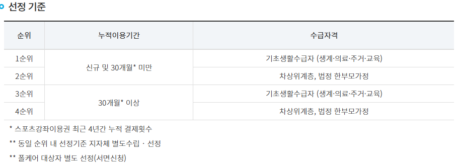 신청 절차는 대체로 다음과 같습니다. 먼저, 본인 또는 보호자가 신청서를 작성하고, 자격 요건을 증빙할 수 있는 서류를 제출해야 합니다. 이후 심사 과정을 거쳐 대상자로 선정되면 바우처가 지급됩니다. 지급 방식은 온라인 바우처 포인트 형태로 제공되며, 지정된 체육 시설에서 사용 가능합니다.