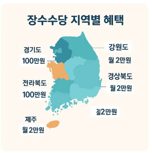 장수수당은 전국적으로 동일하지 않고, 각 지자체별로 운영 기준과 지급 금액이 다릅니다. 어떤 지역은 매달 현금으로 지급, 또 어떤 곳은 특정 연령 때 일시금으로 지급하고 있습니다.