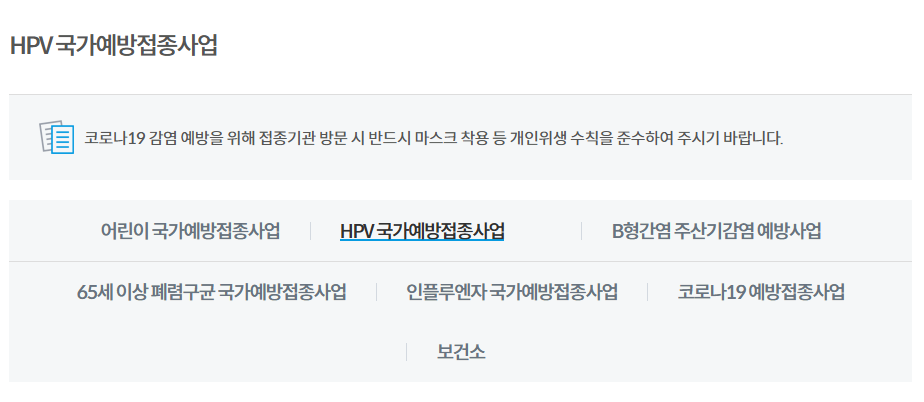 자궁경부암 예방접종은 국가예방접종사업(NIP)에 포함되어 있으며, 매년 일정 연령대의 여성 청소년을 중심으로 무료 지원이 되고 있습니다.
