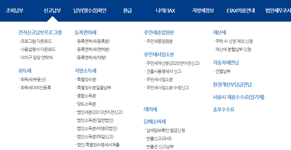 ● 이택스(ETAX) : 서울특별시 전용 납부 시스템. https://etax.seoul.go.kr