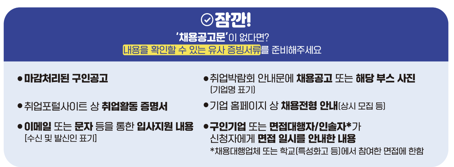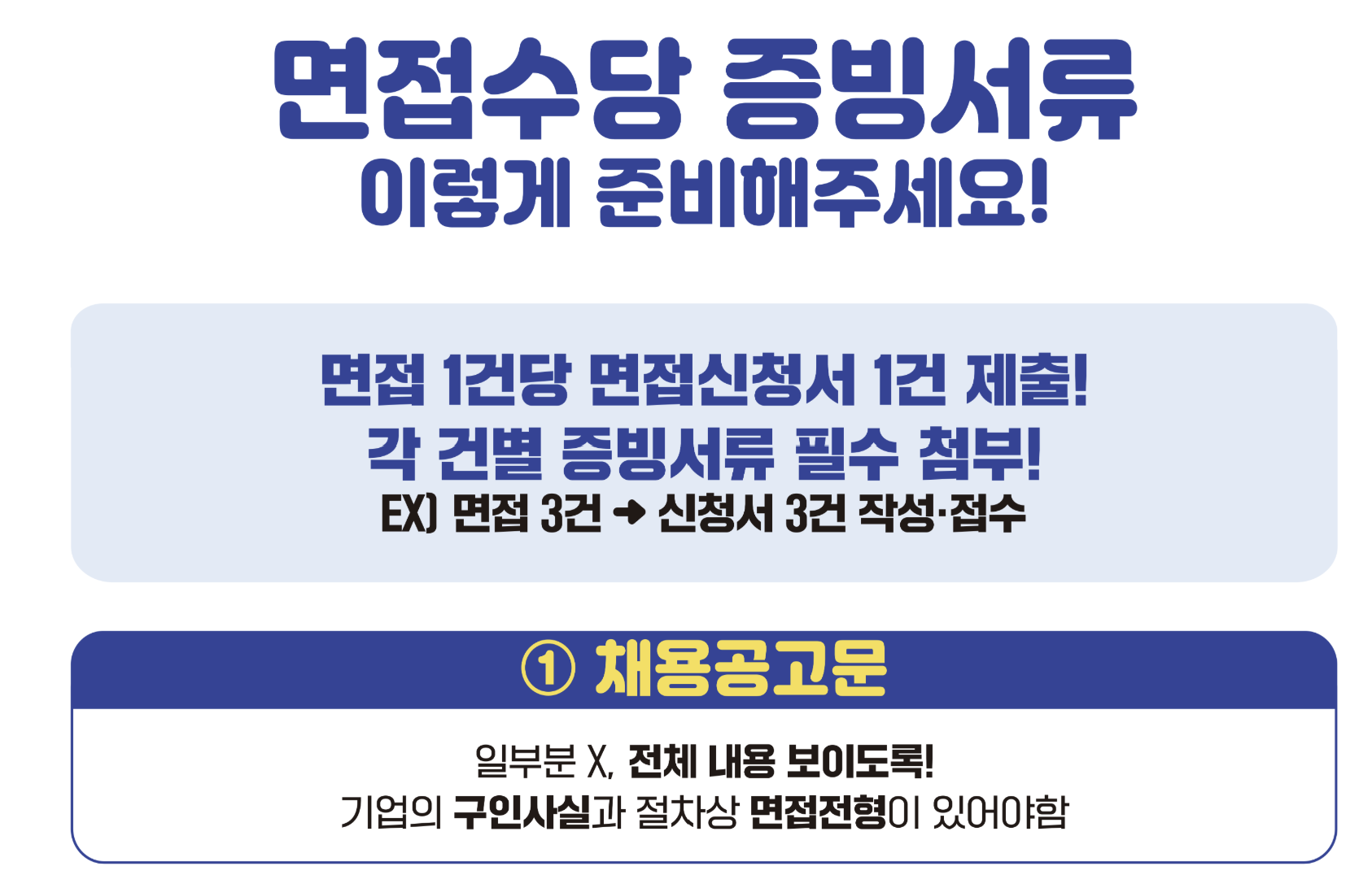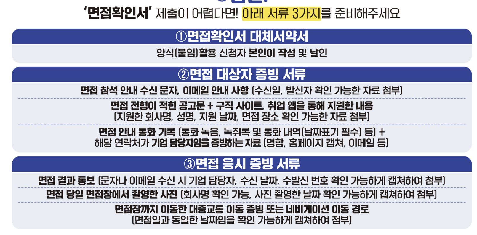 면접 관련 증빙자료가 명확하지 않으면 반려될 수 있으니, 이메일, 문자, 캡처 이미지 등을 정확히 제출해야 합니다.