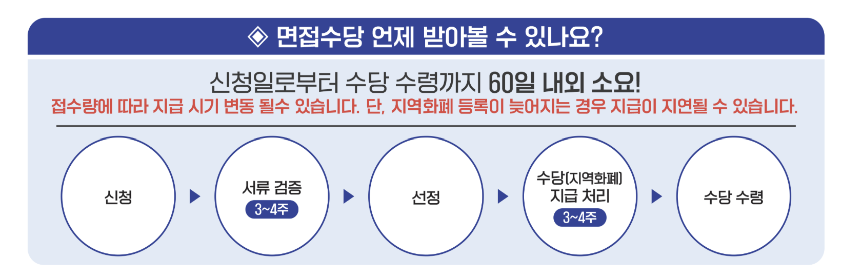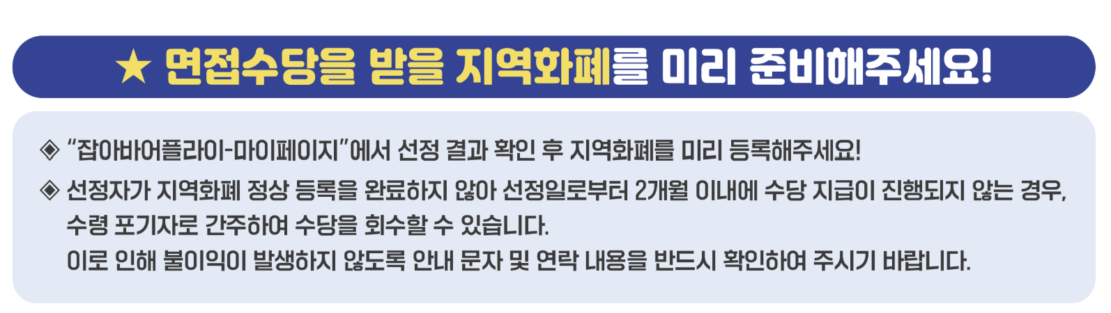 심사 과정을 거친 뒤, 선정된 청년에게는 지역화폐 형태로 면접수당이 지급됩니다. 보통 심사 결과는 신청 마감 후 약 한 달 내에 개별 통보됩니다.
