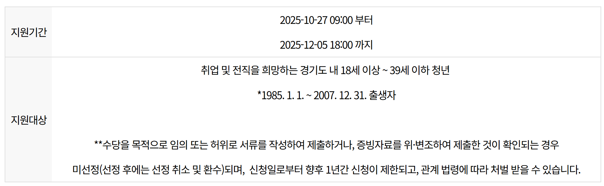 또한 2025년 1월 1일 이후 면접에 참여한 청년이라면 신청 자격이 주어집니다. 즉, 과거 면접 이력이라도 올해 안에 진행된 면접이라면 소급 신청이 가능합니다.