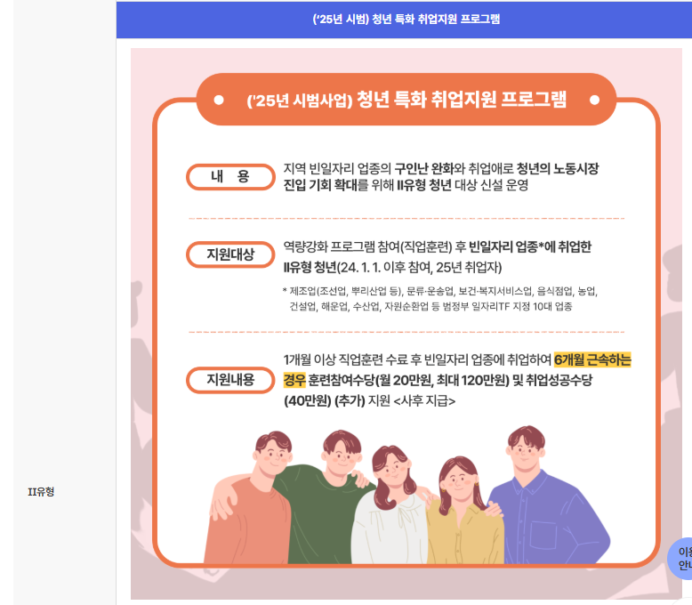 2유형: 청년, 경력단절자, 중장년층 등 고용 지원이 필요한 사람으로, 직업훈련, 일자리 알선, 취업상담 등 서비스 중심의 지원을 받습니다.