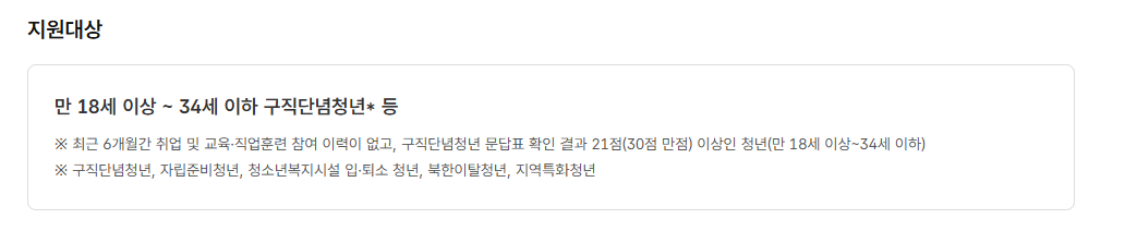 다음은 활동 공백 기간입니다. 신청일 기준으로 최근 6개월 이상 취업 또는 교육·직업훈련에 참여한 이력이 없는 청년이 대상입니다. 이 조건은 이른바 ‘구직단념청년’을 정의하는 기준의 하나입니다.