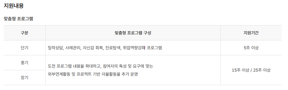 따라서 지원을 받고자 한다면 “나는 어떤 부분에서 도움을 받아야 하는가?”, “어떤 유형 프로그램이 나에게 적합한가?”를 먼저 고민해보는 것이 좋습니다. 예컨대 심리적 위축이 큰 상태라면 단기에서부터 시작하여 점차 확대하는 방식이 될 수 있고, 어느 정도 준비되어 있다면 중기·장기형을 선택하는 방법도 있습니다.
