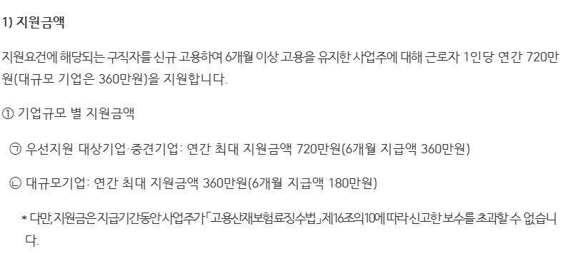 ● 채용 후 최소 6개월 이상 고용을 유지해야 하며, 이후 지원금이 6개월 단위로 지급됩니다.