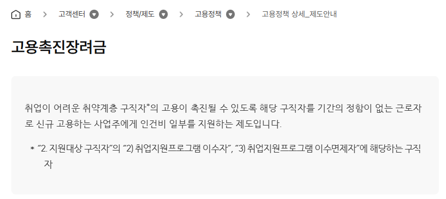 고객센터>정책/제도>고용정책 목록>고용정책 상세_제도안내