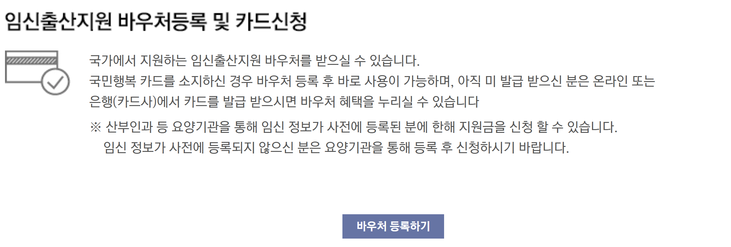 ● 카드 발급 후, 자신이 지원 대상에 해당하는 바우처(예: 출산 지원, 에너지 지원, 기저귀 지원 등)를 별도로 신청해야 합니다.