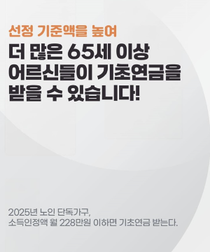 이는 노후생활비의 일부를 국가가 보조하는 성격으로, 고령층의 경제적 자립에 실질적인 도움이 될 것으로 기대됩니다.