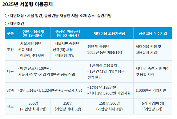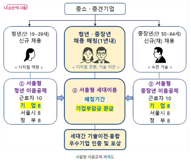 - 서울시는 고용지원을 단순히 '채용'에 그치지 않고, 세대 간 상생과 경력 전수까지 고려한 구조로 고도화하고자 합니다.