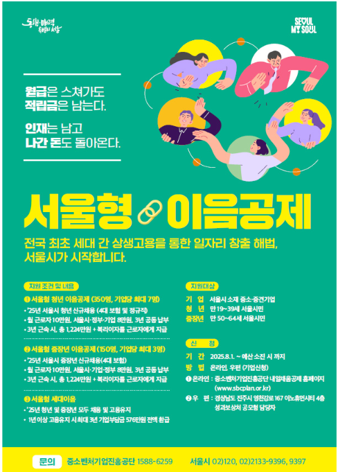 청년 고용을 늘리고, 중소기업의 인재난을 해소하며, 중장년층의 경력 단절도 해결하고자 서울시가 특별히 마련한 제도가 있습니다. 바로 ‘서울형 이음공제’입니다. 이 제도는 고용시장 양극화 해소와 상생의 가치를 담고 있는 일자리 지원 프로그램으로, 청년과 중장년, 기업 모두에게 실질적인 혜택을 제공합니다.