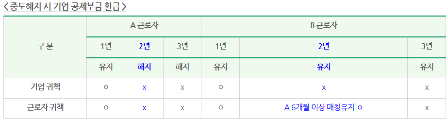 ※ 근로자 귀책 : 연속 6개월 이상 미납, 창업, 자발적 퇴사(이직, 학업 등), 배임·횡령 등 불법행위, 사업자등록