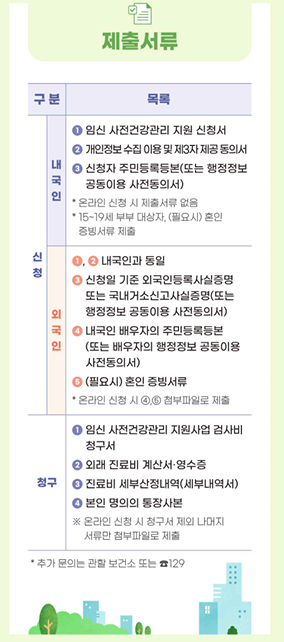 - 기타 검사(예: 성병, 풍진 항체 검사 등)는 필요시 의사의 판단 및 동의 하에 지원한도 내에서 함께 포함될 수 있습니다
