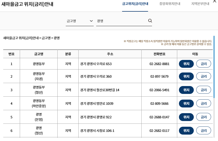 또한 새마을 금고 이용자들을 위해 지점마다 예금금리 특판이 어느곳이 더 나은에 대해서도 조회가 가능합니다.