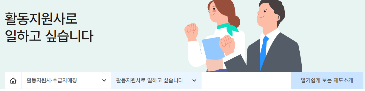 직접 장애인 활동지원사로 일을 하고 싶으시다면 사이트에 활동지원을 할수도 있습니다.
