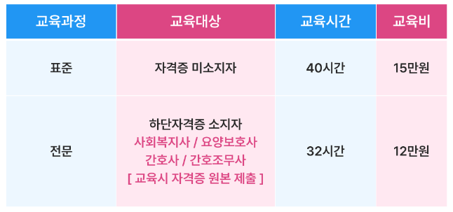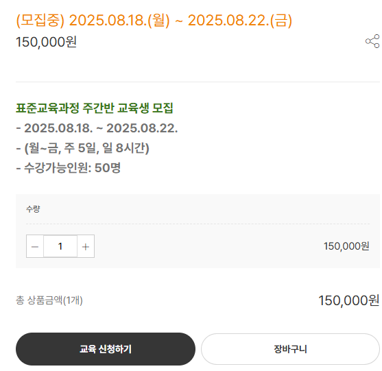 ① 표준과정(※ 교육기관별로 교육 일정과 신청 방법이 다르므로, 사전 문의가 필수입니다.)