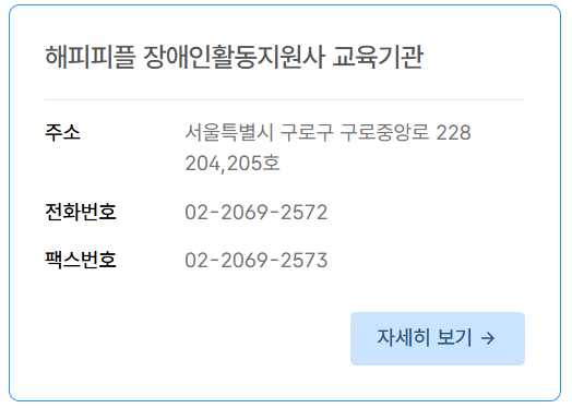 - 근무 형태: 교육 수료 후, 보건복지부 지정 활동지원기관과 근로계약을 체결하여 가정 또는 지역사회 현장에서 근무합니다.