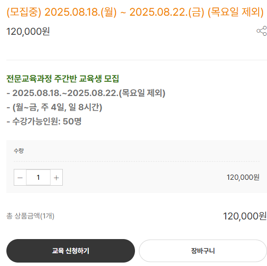 ② 전문과정 (※ 교육기관별로 교육 일정과 신청 방법이 다르므로, 사전 문의가 필수입니다.)