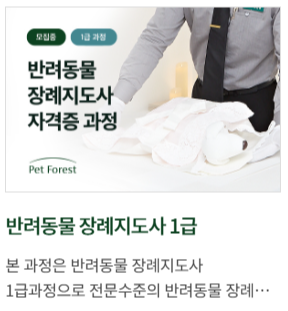 ▶ 이론+실습형 교육기관 사이트 : https://class.petforest.kr/main/index.jsp