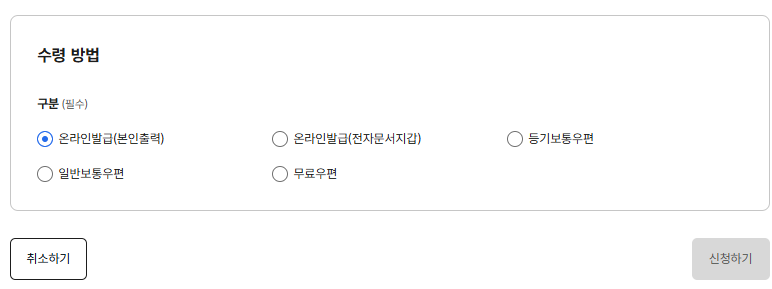 ※ 정부24 발급은 무료이며, 신청 즉시 내려받을 수 있다는 장점이 있습니다.