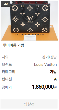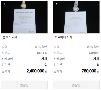 인기 품목은 경쟁이 치열하여 시세보다 높게 낙찰될 수 있습니다. 반드시 본인이 지불 가능한 상한선을 정해 두고 입찰하세요.