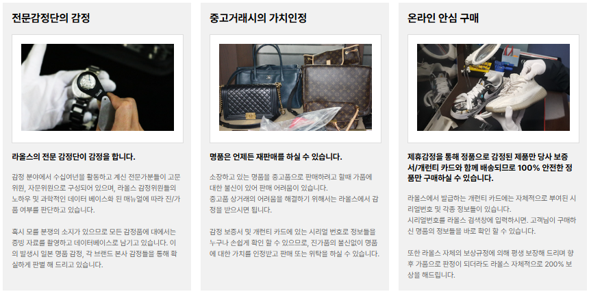 단, 위조품 판정 시 환불 및 감정가 100% 보상이 적용됩니다.