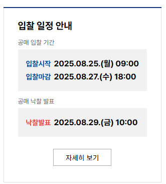 입찰 기간: 8월 25일(월) 09:00 ~ 8월 27일(수) 18:00