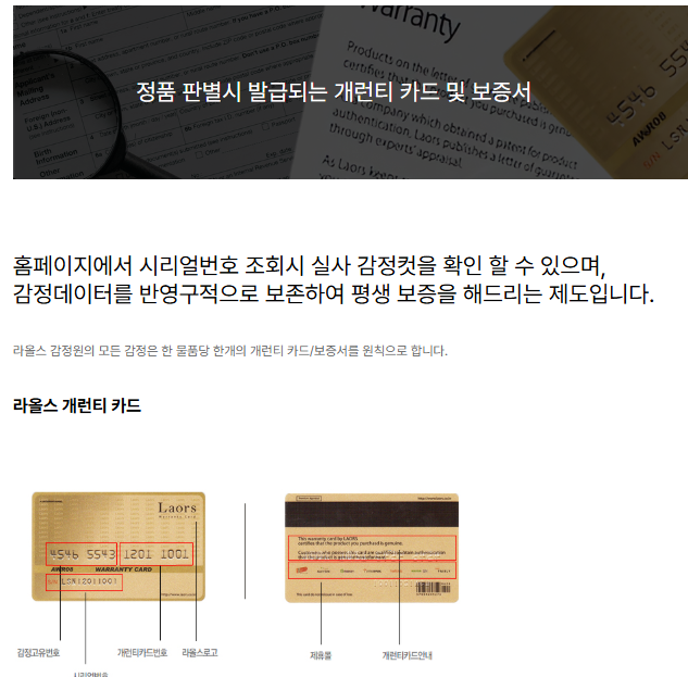 ● 공적 보증: 위조품 판명 시 환불 및 보상제도가 마련되어 있습니다.