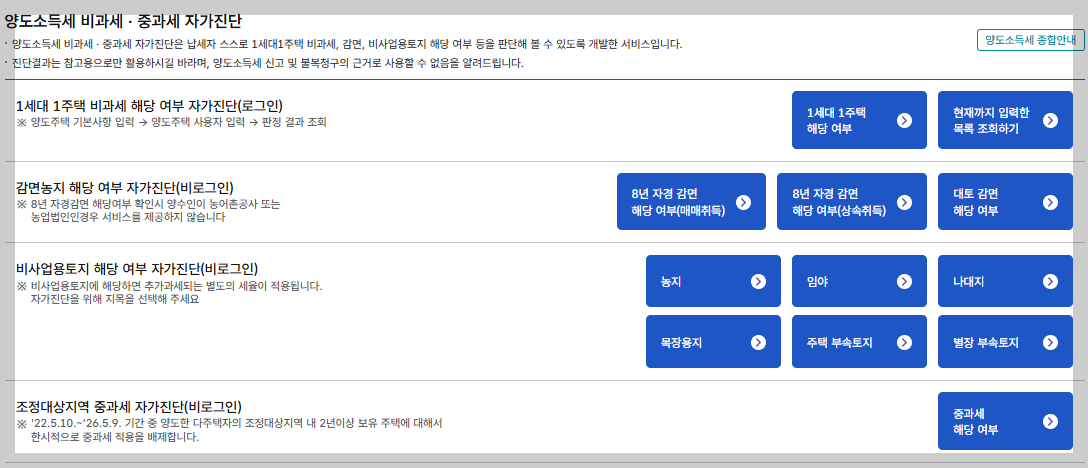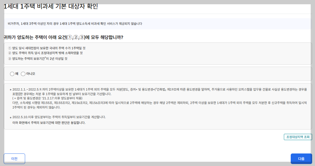 양도소득세 1세대 1주택 비과세 자가진단 서비스 | 민원 안내 및 신청 | 정부24