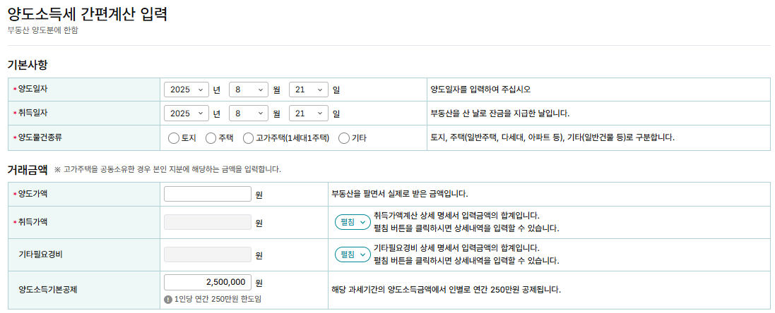 Q7. 양도소득세 계산은 어디서 할 수 있나요?