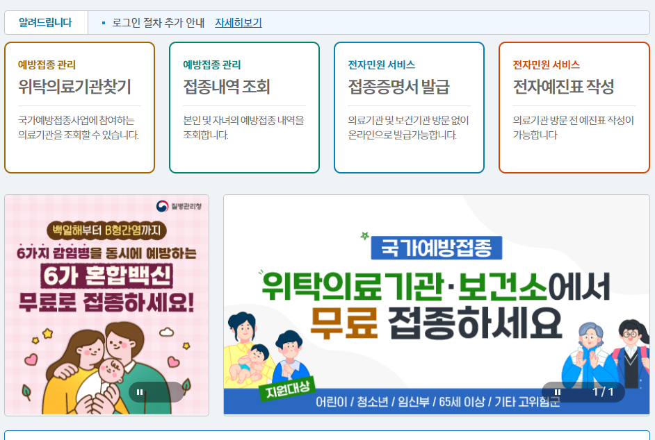 - 주요 기능: 예방접종 이력 조회, 증명서 발급, 접종 일정 안내