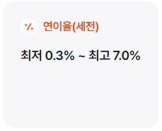 - 50만 원 이하 예치 시: 최대 연 7.0% (세전)