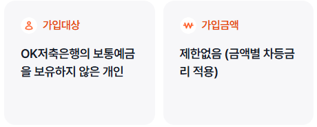 - 가입 대상: OK저축은행 보통예금 계좌가 없는 개인 고객에 한해 1인당 1계좌 개설 가능