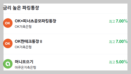 < 파킹통장 금리 TOP 3 >